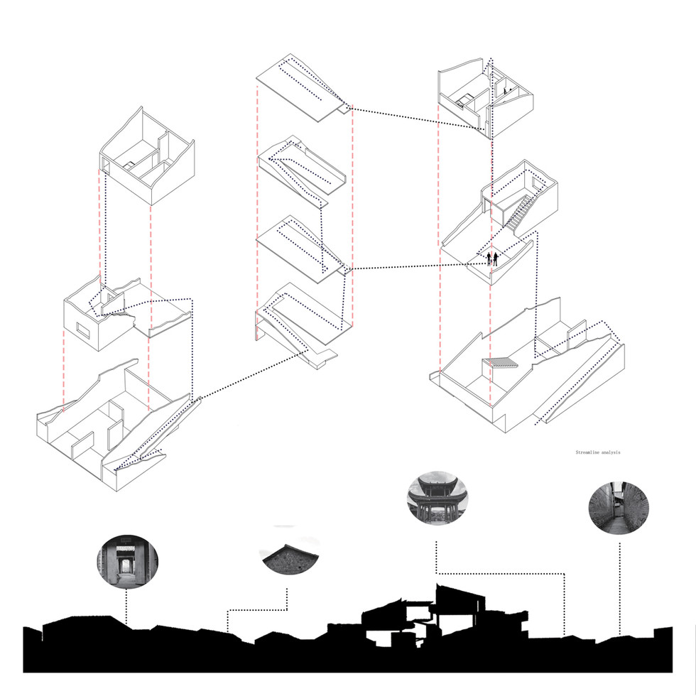 Vernacular architecture refers to the traditional architectural style of vernacular architecture more spontaneous, linked to the landscape, so we choose the traditional style of Xiamei ancient village. Vernacular architecture refers to the traditional architectural style of vernacular architecture more spontaneous, linked to the landscape, so we choose the traditional style of Xiamei ancient village. Along with the process of globalization, we believe that the development trend of the vernacular architecture and modern architecture will be fierce collision. How can the innovation of vernacular architecture is the focus of our thinking. We believe that the modern architecture and traditional architecture can be harmonious. We use the glass frame connected on both sides on behalf of the modern representative of traditional architectural style. The ramp and Roof garden can let people increase communication possibilities. We are trying to create a can make local customs to continue, and the living environment has changed the vernacular architecture.