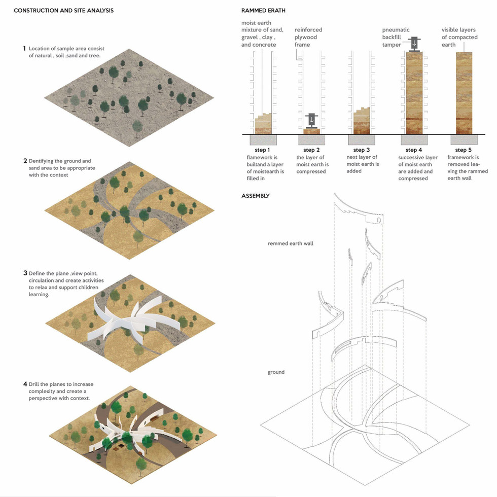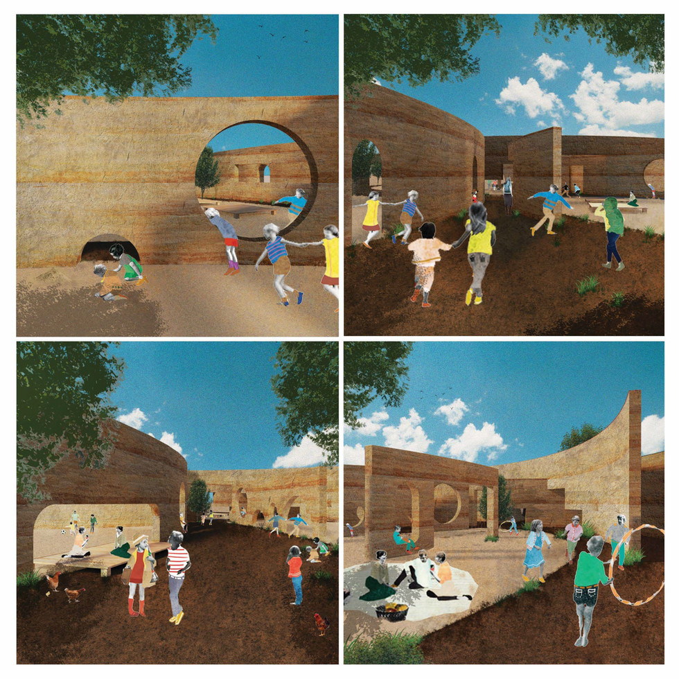 In the era of green architecture and environmental friendly architecture. Soil is local material that can easily be used with or without burning it. When soil is compressed into cube-shape, it can expose to the sun and become sun dried bricks. These can be used in various ways. In our play-ground, the bricks are used to create curve walls in order to enclose spaces for local people and families to use as public play-ground.